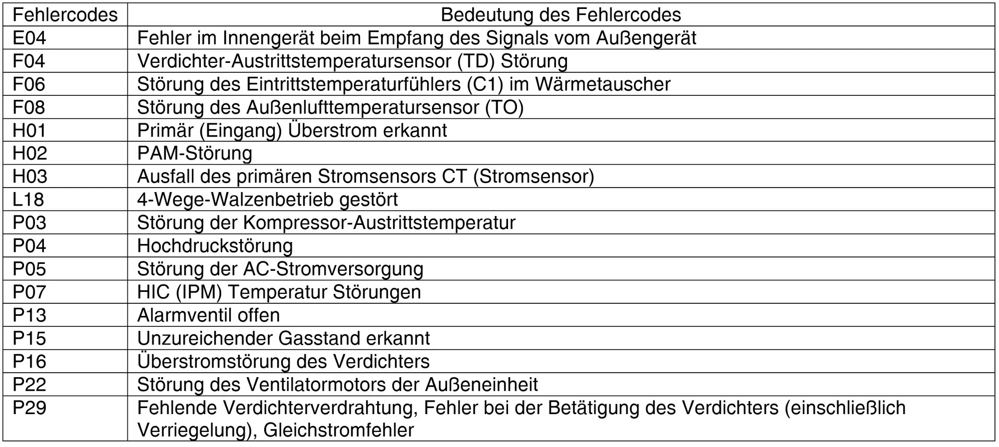 - Signalübertragungsfehler Innengerät-Außengerät aufgrund eines Drahtbruchs in den Verbindungsleitungen zwischen Innen- und Außengerät