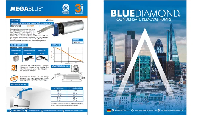 Wir freuen uns, Ihnen erneut das leistungsstarke Portfolio der BlueDiamond® Kondensatpumpen anbieten zu können! Als einzige am Markt vereinen diese rohrlosen, selbstansaugenden Systeme eine zuverlässige Entfernung von Sedimenten und Ablagerungen mit vollständiger Trockenlaufsicherheit. Ausgestattet mit der patentierten Rotary-Diaphragm-(RD)- und GyRok™-Technologie setzen BlueDiamond® Pumpen neue Maßstäbe in Effizienz, Langlebigkeit und Wartungsfreiheit – ideal für anspruchsvolle Anwendungen in der Klima- und Kältetechnik.