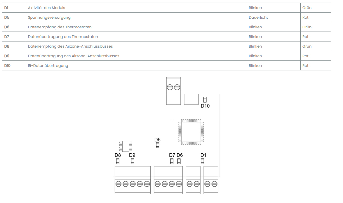 Lokales Steuermodul zur Steuerung von Klimaanlagen über Infrarot. Kommunikation über Kabel mit Zonenthermostaten. Stromversorgung über den Airzone-Anschlussbus des Systems.