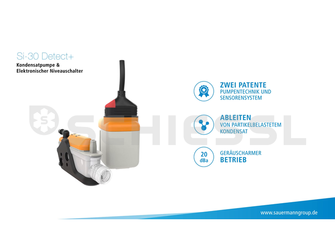 SI steht für patentierte Schwingkolbentechnologie, die für die Kondensatpumpe Si 30 verwendet wird. Mit der neu konstruierten Halterung kann der Pumpenblock schallentkoppelt an der Wand, an einem Rohr oder hängend montiert werden. Für den Anschluss des Schwimmerschalters an den Kondensatabfluß ist ein Kautschukbogen 90° im Lieferumfang enthalten. Weitere Vorzüge der Sauermann-Pumpe: doppelte Isolierung, potentialfreier Alarmkontakt für Sicherheitsabschaltung, Überhitzungsschutz mit automatischem Wiederanlauf.