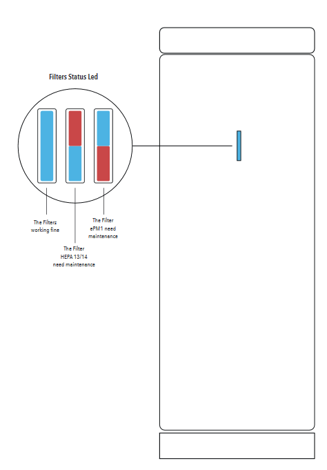 Die letzte Filterstufe besteht aus einem HEPA-13-Filter, der ≥ 99,95 % der Partikel zurückhält und wird unmittelbar vor dem Ventilatorteil positioniert. Optional ist der HEPA-13-Filter durch einen HEPA-14-Filter ersetzbar, der einen höheren Abscheidegrad von ≥ 99,995 % der Partikel zurückhält.