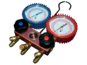 2-Ventil-Prüfarmatur kpl. im Koffer für R410A. Die Montageprüfgeräte sind mit vibrationsfreien Manometern Ø 80 mm mit einer Messgenauigkeit von ±1% vom Skalenbereich (KL 1.0) ausgerüstet. Der Anzeigenbereich erstreckt sich beim Niederdruckmanometer von (RGEL) -1 bis +35 bar und beim Hochdruckmanometer (RGEH) von -1 bis +55 bar sowie der entsprechenden Temperatureinteilung für das Kältemittel. Das PRO-SET® Membran-Ventilsystem ist in einem hochwertigen korrosionsfreien Aluminium-Ventilkörper (Farbe rosa) untergebracht. Durch das einzigartige Teflon-Membran-Ventilsystem in Verbindung mit großen Ventilknöpfen ist eine 100%-ige Schließung der Ventile durch nur eine 360°-Drehung ohne große Kraftanstrengung möglich.