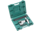 Taumelbördelgerät in gewohnter Refco Qualität, hergestellt aus geschmiedetem Stahl. Eine Aushängekupplung verhindert ein Überdrehen des Bördels. Perfekt geeignet für den Kältetechniker, um schnell und sauber 45° Bördelverbindung herzustellen. Die Klemmleiste hat Aufnahmen für folgende Rohrdurchmesser: 1/8", 3/16", 1/4", 5/16", 3/8", 1/2", 5/8" und 3/4". Das Bördelwerkzeug wird in einem speziellen Kunststoffkoffer mit Werkzeugeinlage geliefert.
