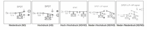 Bei Pressostaten oder Druckschaltern unterscheidet man von der Anwendung her zwischen Hochdruckpressostaten, Niederdruckpressostaten, Doppeldruckpressostaten, Mehrstufenpressostaten und Differenzpressostaten. Hoch- und Niederdruckpressostate begrenzen den Druck nach oben bzw. nach unten. Bei ...