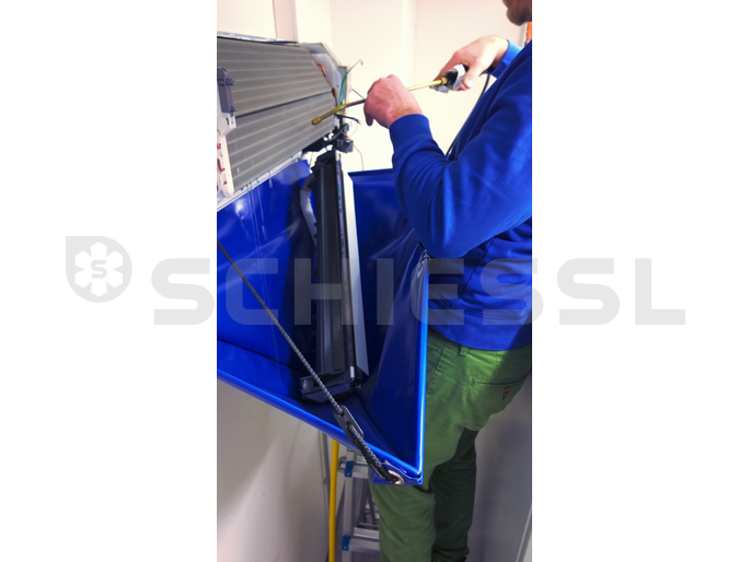 - Freihändiges Arbeiten: Mit dem mitgelieferten Aufhängesystem lässt sich der Trichter einfach direkt unter der Klimaanlage befestigen, sodass Servicetechniker freihändig arbeiten können.