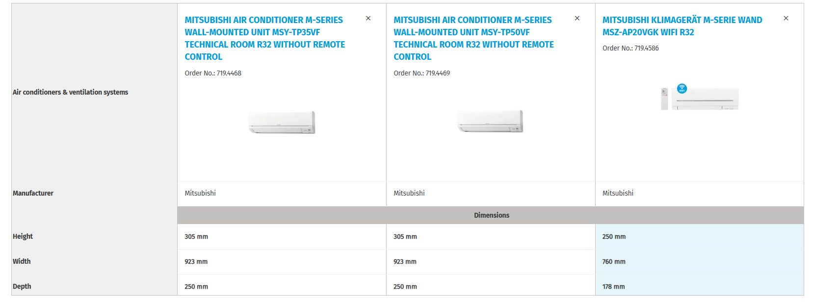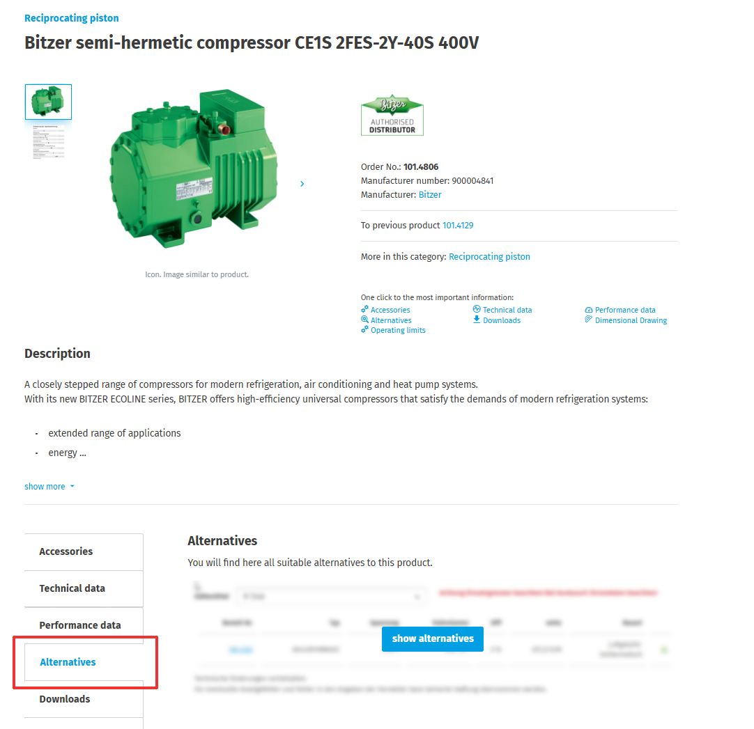 If the item you need is not currently available, you can compare alternative items with the item you need. You can compare the technical data and see exactly which item you can order as an alternative.